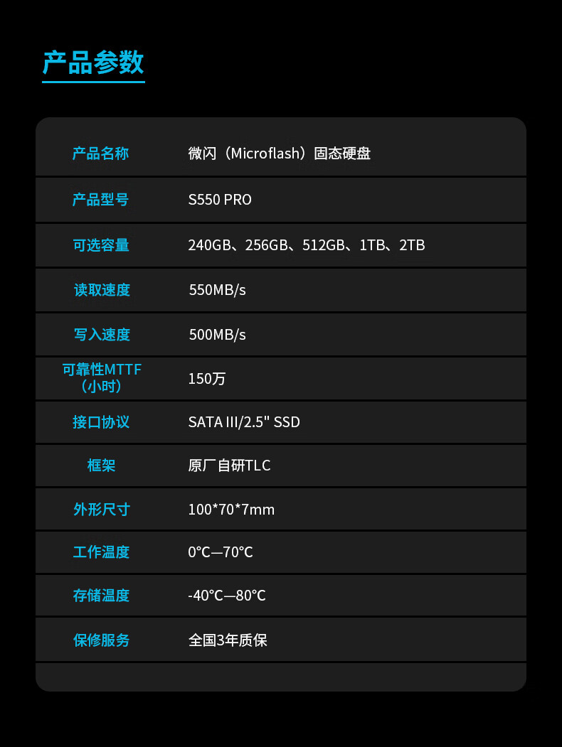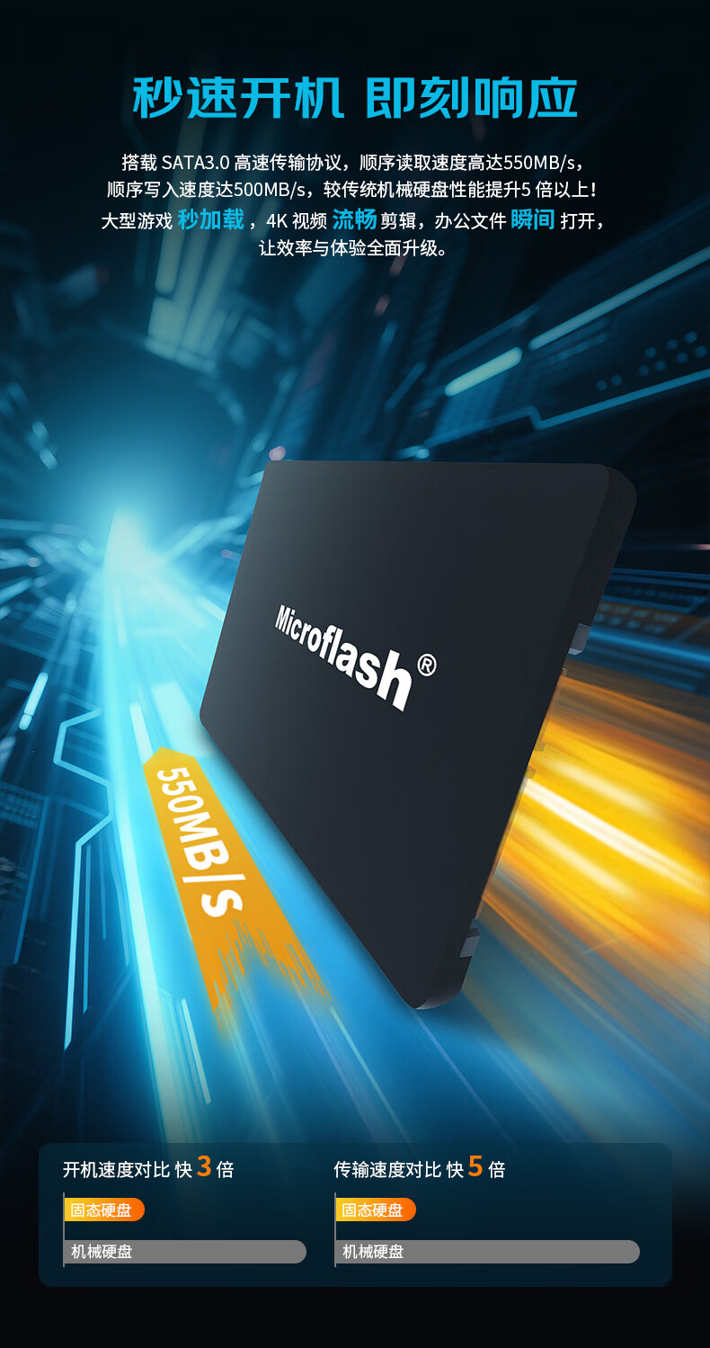 商品名称:微闪(Microflash) SSD固态硬盘SATA3.0接口 笔记本台式机一体机电脑硬盘高速低功耗内存 微闪S550PRO SATA 240GB