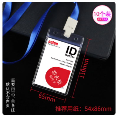 商品名称:优和 防水工作证卡套【B1(竖)+优质挂绳】 10套/组